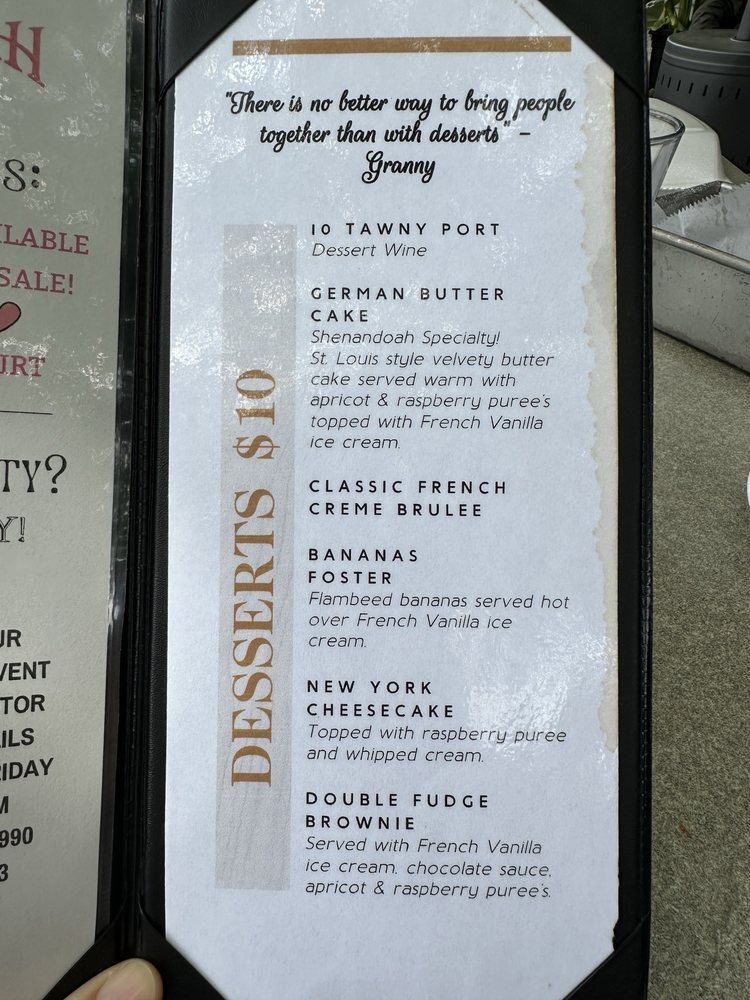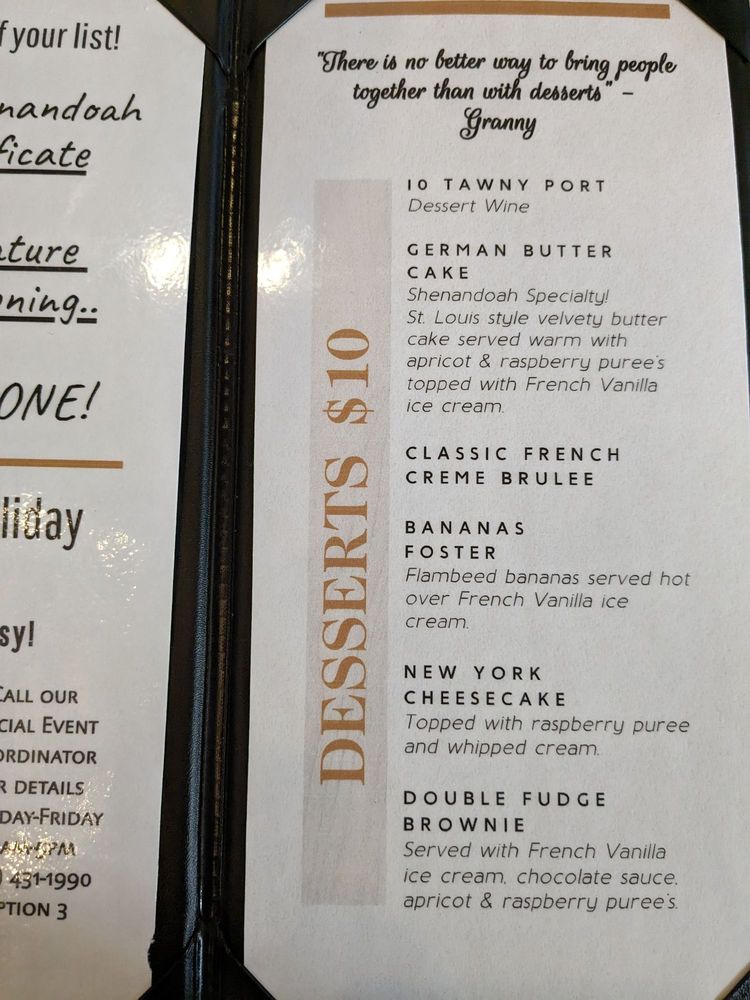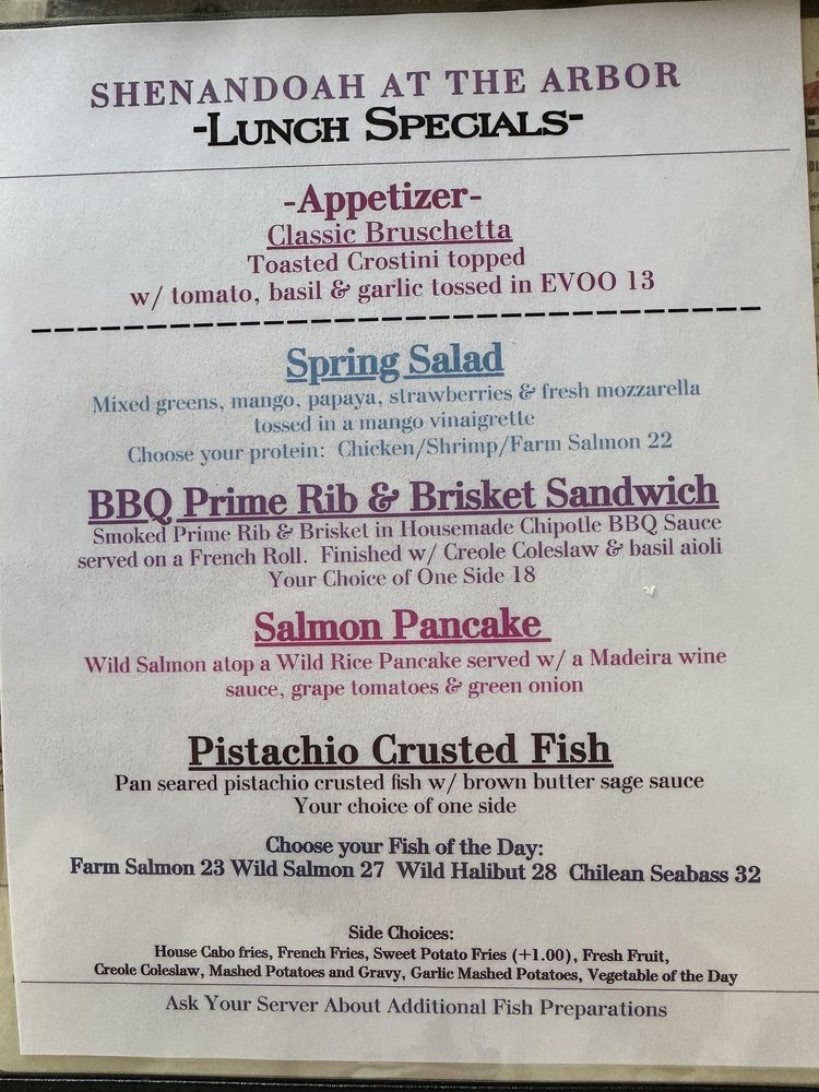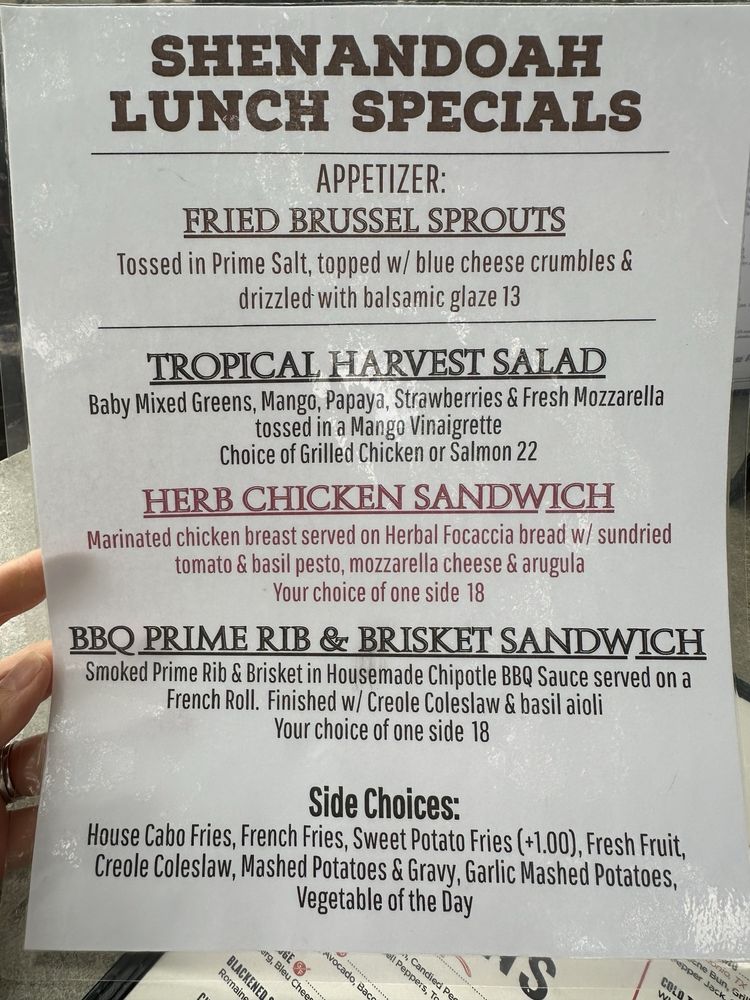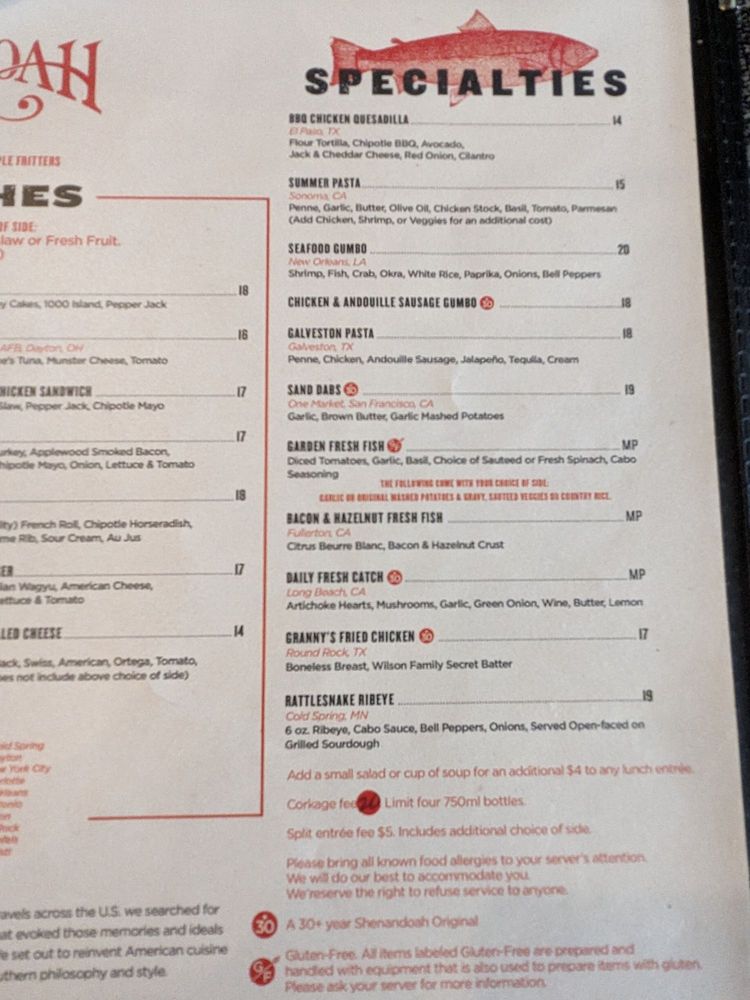 Introducing the menu at Shenandoah At the Arbors, a charming restaurant in Los Alamitos, CA, that offers a variety of delightful dishes. From starters like Shrimp Cabo and Rick's Mushrooms, to salads like Texas Fried Chicken Salad and Blackened Salmon Caesar Salad, there's something for everyone. Their Dinner From the Coop section features mouthwatering options like Lemon Chicken and Raspberry Chipotle Duck. Customers rave about the friendly service and lovely outdoor seating with twinkling lights. The complimentary apple fritters and rolls are a must-try. With a mix of Southern French flavors and a cozy ambiance, Shenandoah At the Arbors is a top choice for a delicious dining experience.